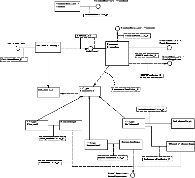 Opening up the PhoneServiceSystem module in Figure 18 , we see its main classes and interfaces. Classes are drawn as rectangles and interfaces as circles. Classes implement and use interfaces. As an example, the diagram shows that ServiceExecutor implements ServiceI