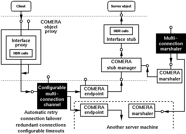 Figure 6. Client-transparent object failover with COMERA.