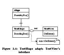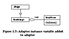![]() ![]() Schema transformations perform many of the simple edits encountered when evolving class diagrams. They can be used alone or in combination to evolve object-oriented architectures. Design Pattern MicroarchitecturesDesign patterns capture expert solutions to many common object-oriented design problems: creation of compatible components, adapting a class to a different interface, subclassing versus subtyping, isolating third party interfaces, etc. Patterns have been discovered in a wide variety of applications and toolkits including Smalltalk Collections [Gol84], ET++ [Wei88], MacApp [App89], and InterViews [Lin92]. As with database schema transformations, refactorings have been shown to directly implement certain design patterns: We directly support three additional patterns as refactorings: While design patterns are useful when included in an initial software design, they are often applied in the maintenance phase of the software lifecycle [Gam93]. For example, the original designer may have been unaware of a pattern or additional system requirements may arise that require unanticipated flexibility. Alternatively, patterns may lead to extra levels of indirection and complexity inappropriate for the first software release. A number of patterns can be viewed as automatable program transformations applied to an evolving design. Examples for the following two patterns have been documented: At least five additional patterns from [Gam95] can be viewed as a program transformations: In all cases, we can apply refactorings to simple designs to create the designs used as prototypical examples in [Gam95]. The following sections show how the first two patterns can be automated. AdapterAdapter lets classes work together that couldn't otherwise because of incompatible interfaces. In the object adapter example from [Gam95] (Figure 3.4), the TextShape class adapts TextView 's GetExtent() method to implement BoundingBox() . The adapter can be constructed from the original TextView class (Figure 3.5) in five steps: ![]() ![]()