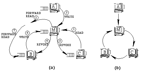 (1) Client C sends a read request to the manager. (2) The manager forwards