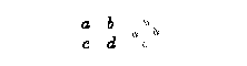 let val A = text "$\\begin{array}{cc} a & b \\\\ c & d \\end{array}$" in hseqsplist 0.5 [A scale 1.5, A rotate 45.0] end;