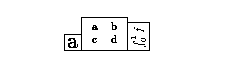 frame (text "\\huge a") hseq frame (text ("\\begin{tabular}{cc} a & b" ^ "\\\\ c & d \\end{tabular}") hseq frame (text "$\\int_{0}^{1} f$" rotate 90.0);