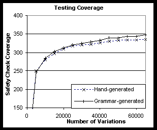 grammars. 1. Introduction This paper describes lava, a special purpose language for specifying production grammars, and summarizes how production grammars can be used as part of a concerted software engineering effort to test large systems. In particular, we describe our experience with applying production grammars written in lava to the testing of Java virtual machines. We show that production grammars, expressed in a suitable language, can be used to automatically create, and reason about, complex test cases from concise, well-structured specifications. Modern virtual machines [Lindholm&Yellin 99, Inferno, Adl-Tabatabai et al. 96], such as Java, have emerged in recent years as generic and ubiquitous components in extensible applications. Virtual machines can now be found in hypertext systems [Berners-Lee et al. 96], web servers [SunJWS], databases [Oracle], desktop applications, and consumer devices such as cellphones and smartcards. The primary appeal of virtual machines is that they enable users to safely run untrusted, and potentially malicious, code. The safety of modern virtual machines, Java in particular, depends critically on three large and complex software components: (1) a verifier for static inspection of untrusted code against a set of safety axioms, (2) an interpreter or a compiler to respect instruction semantics during execution, and (3) a runtime system to correctly provide services such as threading and garbage collection. A failure in any one of these components allows applications to violate system integrity, and may result in data theft or corruption [McGraw & Felten 96]. This capability to execute untrusted code places a large burden on the system implementers to ensure overall system safety and correctness. A typical modern virtual machine such as Java contains hundreds of fine-grain, subtle and diverse security axioms in its verifier, as well as many lines of similarly subtle code in its interpreter, compiler and system libraries. Consequently, verifying the correctness of a virtual machine is a difficult task. Testing Alternatives The current state of the art in formal program verification is not yet sufficient to verify large, complex virtual machines. While the theory community has made substantial progress on provably correct bytecode verifiers [Stata&Abadi 98,Freund&Mitchell 98], current results exhibit three serious shortcomings. Namely, they operate on abstract models of the code instead of the actual implementation, cover only a subset of the constructs found in a typical virtual machine and require extensive human involvement to map the formal model onto the actual implementation. In addition, these type-system based formal methods for verifiers do not immediately apply to interpreters, compilers or the runtime system, whose functionality is hard to model using static type systems. Subsequently, virtual machine developers have had to rely on manual verification and testing techniques to gain assurance in their implementations. Techniques such as independent code reviews [Dean et al. 97] and directed test case generation have been used extensively by various commercial virtual machine vendors. However, manual testing techniques, in general, are expensive and slow due to the amount of human effort they entail. In addition, independent code reviews require relinquishing source code access to reviewers, and lack a good progress metric for the reviewers' efforts. Manual test case generation, on the other hand, often requires massive amounts of tedious human effort to achieve high code coverage. A common approach to automating testing is to simply use ad hoc scripts, written in a general-purpose language, to generate test inputs. While this approach may save some time in test creation, it exhibits a number of shortcomings. First, writing such test scripts is time consuming and difficult, as scripting languages often do not provide any convenient constructs for this programming domain beyond string manipulation. Second, managing many such scripts is operationally difficult once they have been written, especially as they evolve throughout the life cycle of the project. Third, the unstructured nature of general-purpose languages poses a steep learning curve for those who need to understand and modify the test scripts. Fundamentally, a general-purpose language is too general, and therefore too unstructured, for test generation. Production Grammars In this paper, we describe lava, a special purpose language for specifying production grammars. A production grammar is a collection of non-terminal to terminal mappings that resembles a regular parsing grammar, but is used "in reverse." That is, instead of parsing a sequence of tokens into higher level constructs, a production grammar generates a stream of tokens from a set of non-terminals that specify the overall structure of the stream. We describe how lava grammars differ from traditional parsing grammars, and illustrate the different features we added into the language to support test generation. Our experience with lava demonstrates that a special purpose language for specifying production grammars can bring high coverage, simplicity, manageability and structure to the testing effort. Production grammars are well-suited for test generation not only because they can create diverse test cases effectively, but also because they can provide guidance on how the test cases they generate ought to behave. It is often hard to determine the correct system behavior for automatically generated test cases -- a fundamental difficulty known as the oracle problem. In the worst case, automated test generation may require reverse engineering and manual examination to determine the expected behavior of the system on the given test input. We address the oracle problem in two ways. We first show that test cases generated with production grammars can be used in conjunction with comparative testing to create effective test suites witho