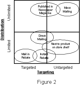 3. Distributing coupons to select shoppers Currently store coupons are generally mailed indiscriminately to local geographic area (mass mailing). They are also targeted to buyers with specific buying pattern or past purchase history at the store (direct mailing). For example, coupons for charcoal may be sent to people who bought a grill at the store, or charcoal at the store in the recent past. Manufacturer’s coupons are invariably targeted either geographically or guided by buyer segmentation (by income, profession, etc.). Choosing where to publish the coupons (if they are not mailed directly) helps create this segmentation. Manufacturer’s coupons are also dispensed at the point of sale, attached to the merchandise (for cross sales, up sales and immediate discounts), or presented with the product as mail in rebate. Mechanisms to estimate a buyer’s or buyer group’s inclination to buy various products based on his purchase history are numerous and well known and currently used to target advertising and coupons. Cross selling and up selling are other important uses of traditional coupons. In cross selling, the purchase of some product, say dress shirt, creates the knowledge that the buyer is possibly also well disposed to buying ties, and he can be encouraged to buy ties at a later date by sending him a coupon for a tie. In upselling incentives are given at the time of purchase of a product to buy upgrades or accessories to that product. For example, the purchase of a personal computer and not a printer may suggest that the coupon for discount on printers should be sent to the buyer. The Internet improves the effectiveness of targeting coupons to buyers who would have otherwise not bought the product being discounted. An essential component for effective targeting is the software to make decisions on which coupons (if any) to show to a particular buyer and when. Buyers should be given coupons for products that are just below their buying threshold. The up sales coupons and cross sales also can be made more effective by using instant rebates instead of the traditional mailed coupons. Maintaining a profile of buyers interests, likes and dislikes is another way to determine which products fall just under each buyer’s buying threshold. These profiles will be populated by: 1) summarization and analysis of buyer’s past purchasing behavior, 2) information obtained from external sources such as county records, department of motor vehicles, local schools etc., and 3) Information provided voluntarily by the buyer through interactive dialogues, sweepstakes, and games. The external sources mentioned earlier tell a seller what kind of car does the buyer drive, how many children he has and of what ages, what type of house does he live in. This can be used to formulate rules for what products should be promoted to a buyer. Click stream analysis allows a merchant to instantaneously gauge the interest of a web site visitor on different products and product categories. He can then use this information to generate instant rebate coupons on the fly. This can not be done with paper coupons. For example, if a buyer scans several brands of some product and then switches to scanning a different product without selecting the first one for purchase, it may be an opportunity to give a buying incentive for the first product through an e-coupon. Similarly, if the buyer revisits a high priced product several times without buying it, or spends a long time on details of a product, the product may be ripe for instant rebate. Click stream analysis coupled with information from the buyers profile will make couponing on the Internet extremely effective. It is important that the rules for issuing coupons and instant rebates not be obvious to the buyers. Otherwise the buyers can simply exhibit the appropriate behavior to get the rebates even if they would have otherwise bought the product at its regular price. This situation is similar to the current situation of buyers waiting for after Christmas sales. Based on the preceding discussion we can classify coupons