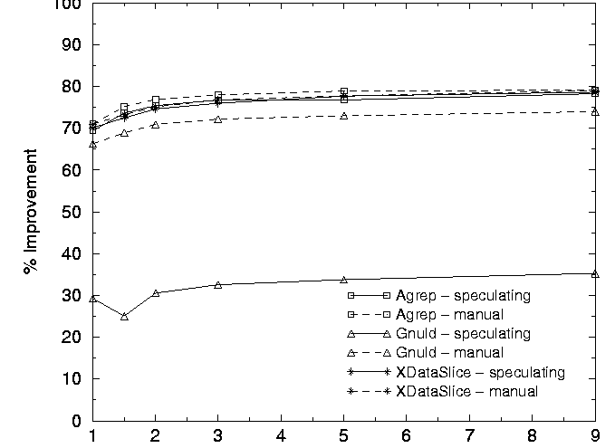 in Gnuld's case. For Agrep and XDataSlice, speculative execution already