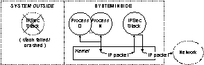 Table 2 Netperf using unidirectional UDP_STREAM The issue illustrated by running netperf in dual-stack configurations is one of resource-management. The run-time behaviour of user-mode applications impact directly on the performance and behaviour of the VPN because the system described does not offer adequate control over resource consumption, namely CPU-usage. As noted in [21], conventional OSes (such as the system described here) currently treats individual processes as resource principals while failing to properly account for the kernel resources that they consume. The simple task of bandwidth-restriction is complicated by the need to calculate the accumulated CPU-usage of a packet as it flows from an interrupt-service routine in the kernel up to a user-mode handler and then down again. In such a scenario, one must view the IPSec stacks as extensions to the kernel and attribute the resources they consume to the originating resource principals. To increase performance, the IPSec stacks could be restructured as a pool of kernel-level threads. However, the user-space design can be improved somewhat - perhaps by increasing the efficiency of event-driven servers (as each IPSec stack invokes select() repeatedly) as described in [24], or by using platform-dependent APIs which perform memory-transfers direct to-and-from user-space instead of the STREAMS interface currently being used. 9 Summary Conventional bump-in-the-stack VPNs have well-known security hotspots such as running the IKE keying agent as root, or placing IPSec processing in the kernel which exposes the kernel to faults in the IPSec stack. A solution to some of these problems is to remap the design of a conventional IPSec VPN to a trusted operating system (such as HP-UX 10.24) to take advantage of the security-features present in such a system. Through the use of a trusted system, further refinements become possible - the IPSec stack and the associated keying-material can be compartmented to offer an even greater degree of security and robustness. The Vaulted VPN architecture features multiple asynchronous user-mode IPSec stacks which execute concurrently and independently from each other. In HP-UX 10.24, these stacks are placed in separate compartments and handle only the IP packets that match the compartment that they're in. IKE keying-material is distributed to the relevant compartments and not kept in a single location. Sensitivity-labels of data crossing the network is preserved through the use of IKE negotiations without requiring the label to be transmitted in each encrypted IPSec packet. The IKE keying-agent is never run as root to prevent faults in the agent from giving root-access. Because the relatively unprivileged IPSec stacks are placed in separate compartments, a failure in one does not necessarily lead to failures or security breaches in another. The Vaulted VPN IPSec stacks are compartmented, stripped of most privileges and do not possess a complete view of all the keying material on the system. The various messaging channels between Vaulted VPN components are protected by a combination of MAC and DAC to offer a higher level of security than would otherwise be present on a non-MultiLevel Secure operating system. Because the IPSec stacks are user-mode processes they can be configured dynamically to execute in parallel for better performance and load balancing. They can also be configured to form multiple redundant stacks for checking the correctness of processed IPSec packets. Host-level accreditation in the style of IPSO/MaxSIX can be achieved by reinterpreting the original mechanisms and performing any needed authentication in the IKE negotiation phase. The failure or success of forming a security-association is directly tied to IKE negotiations that can be expanded to encompass other security-models extant. References [1] The Internet Key Exchange (IKE) protocol (RFC 2409)- D. Harkins, D. Carrel, Nov 1998 [2] Security Architecture for the Internet Protocol (RFC 2401) - S. Kent, R. Atkinson, November 1998 [3] IP Security Document Roadmap (RFC 2411) - R. Thayer, N. Doraswamy, R. Glenn, November 1998 [4] IP Encapsulating Security Payload (RFC 2406) - S. Kent, R. Atkinson, November 1998 [5] IP Authentication Header (RFC 2402) - S. Kent, R. Atkinson, November 1998 [6] Applying Military Grade Security to the Internet, Computer Networks and ISDN Systems, Volume 29 Number 15 - C. I. Dalton, J. F. Griffin, November 1997 [7] Internet X.509 Public Key Infrastructure Certificate & CRL Profile (RFC 2459)- R. Housley, W. Ford, W. Polk, D. Solo, January 1999 [8] HP-UX CMW MaxSix Administrator's Guide, Hewlett-Packard Co., 1995 [9] Compartmented Mode Workstation Evaluation Criteria, Report DDS-2600-6243-91, Defense Intelligence Agency, 1991 [10] TCP/IP Illustrated Vols 1, 2 and 3- Gary R. Wright, W. Richard Stevens, Addison-Wesley 1995. [11] Secure Computer Systems: unified Exposition and Multics Interpretation, MITRE Technical Report MTR -1997 MITRE Corporation NTIS AD A023588/7- D. E. Bell, L. J. LaPadula March 1975 [12] U.S. Department of Defense security options for the Internet Protocol. (RFC1108) - S.T. Kent, November 1991 [13] Revised IP Security Options (RFC 1038) - M. St. Johns, January 1988 [14] STREAMS/UX for the HP 9000 Reference Manual, Hewlett-Packard Co, 1995 [15] The Internet IP Security Domain of Interpretation for ISAKMP (RFC 2407), D. Piper, November 1998 [16] IANA Assigned Port Numbers, ftp://ftp.isi.edu/in-notes/iana/assignments/port-numbers [17] HP Praesidium Extranet VPN, Hewlett-Packard Co., 1998 [18] SOCKS Protocol Version 5 (RFC 1928), M. Leech, M. Ganis, Y. Lee, R. Kuris, D. Koblas, L. Jones, March 1996 [19] CERT Advisory CA-97.28 IP Denial-of-Service Attacks (Teardrop_Land), CERT Coordination Center, May 1998. [20] CERT Advisory CA-96.26 Denial-of-Service Attack via PING, CERT Coordination Center, December 1997 [21] Resource containers: A new facility for resource management in server systems, G. B