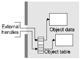 lock object table; verify that the handle is valid; verify that the object allows this type of operation; verify that the ACL allows external access; verify that the ACL allows access by the calling thread; if( access allowed ) set object state = processing message; further messages will be enqueued for later processing unlock object table; forward message to object; lock object table; set object state = normal; unlock object table;This performs the necessary ACL checking for the object in an object-independent manner. The link from external handles through the cryptlib-wide object table and ACL check to the object itself is shown in Figure 6.