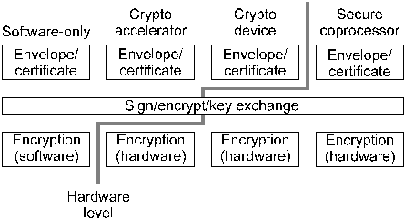 Figure 9. Mapping of architecture functionality levels to crypto/security hardware 6.1. Object Internal DetailsAlthough each type of object differs considerably in its internal design, they all share a number of common features which will be covered here. Each object consists of three main parts: