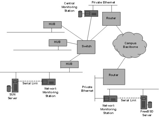 ![]() Figure 1: Network Monitoring Stations located in various parts of the network.
