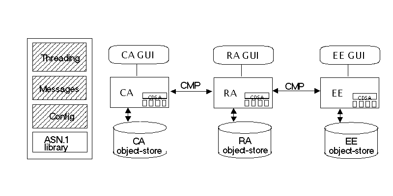 Abstract IBM made a business decision to promote an open, secure, interoperable and integrateable environment by embracing the IETF's Public Key Infrastructure (X.509) standards, developing a reference implementation of the core set, and giving it away as freeware. We discuss the architecture of this reference code, emphasizing lessons learned from implementing the standards in an integrated PKI system. 1 IntroductionThe explosion of the Internet and the Web has forced the distribution of information and resources. Various types of trust relationships must span these resources and the applications that use them. Application and middleware developers have responded to the challenge by creating their own security solutions, which are unfortunately non-interoperable. Thus, organizations of every kind are finding the management of security to be difficult and costly and interoperability of their applications impossible without major intervention. From a business perspective, with projected growth of business to business Internet commerce going from $8 billion in 1997 to $327 billion by 2002, it was seen by IBM as crucial that the infrastructure be in place to provide an open, secure, interoperable, and integrateable environment. Unfortunately, the trend so far has been for vendors to go their own way, trying to follow standards as they emerge, and otherwise interoperate in a pairwise fashion as the market dictates. Customer feedback and internal technical advice caused us to focus on creating a common Public Key Infrastructure (PKI). IBM decided that the best strategy to fulfill its business requirements was to find the most mature standard for PKI available and throw its support behind that standard, by developing and making available a freeware reference implementation, and integrating that standard into its products. A freely available reference implementation allows potential integrators to try it out without a large investment, and provide a baseline for interoperability testing. In addition, feedback from the development experience enhances the quality of the specifications. By providing leadership within the industry, IBM believes it advances Internet computing and ultimately drives faster acceptance/implementation of electronic business. IBM's goal is to help the industry converge on one security infrastructure for the web, thus allowing faster deployment of a secure interoperable underpinning for electronic business. We have learned over the years that disparate infrastructures slow evolution and acceptance of technology; the true market is in applications that exploit common infrastructures.After surveying the body of work already done in this area, as well as the realities of the commercial world, we chose the Internet Engineering Task Force's (IETF) Public Key Infrastructure (PKIX [PKIX]) drafts as our architectural basis. These standards were the beneficiaries of much hard work on the part of many companies, and included the X.509v3 certificate format, which had emerged as a de facto standard. They cover the certificate life-cycle: enrollment and initial certification, key-pair update, certificate update, certificate and Certificate Revocation List (CRL) publication, and certificate revocation. Jonah, our freeware project, currently implements the following PKIX standards: Internet X.509 Public Key Infrastructure Certificate Management Protocols [RFC2510], Certificate Request Message Format [RFC2511], Internet Public Key Infrastructure X.509 Certificate and CRL Profile [RFC2459], and Internet X.509 Public Key Infrastructure LDAPv2 Schema [LDAP98]. Besides implementing PKIX standards, Jonah includes code for Common Data Security Architecture (CDSA) [CDSA97] from Intel, which has been accepted as a standard by The Open Group. CDSA is a framework that can support multiple security providers. The code is a freeware version of IBM's Keyworks product. IBM then put together its first Iris/Lotus/IBM cross company team. The team consisted mostly of a group of engineers, representing different security and technical specialties, who had different ideas about PKI, yet were able to create a reference implementation using the IETF RFCs that were available at the time. This team takes advantage of Iris' Domino PKI experience and the pool of talent in PKIs in the Massachusetts area, Lotus' expertise in security product management, and IBM's long history of cryptography and security standards experience, as well as their broad pool of internal expertise. The next section discusses how the architecture was designed and implemented, in spite of moving specifications that had gaps. With Jonah one can run an EE, an RA and a CA. The architectural discussion covers our design for ASN.1 support, implementation of the transaction protocol and extensions to support RA to CA communication, architectural support for portability, use of CDSA as an abstraction layer to cryptography and data storage, our server API and persistent storage support. We then discuss trust policy, also accessed via CDSA, including our support for chain building (which is not specified in the PKIX standards). The discussion of smart card usage includes our layering of PKCS#11 and CDSA. The challenges of implementing a freeware Graphical User Interface (GUI) are outlined in the next section. After that, the section on porting issues discusses how we are porting our NT code to UNIX, and the section on testing emphasizes the issues that arose with testing freeware. We conclude with a look at current status and issues. 2 Description and Evolution of the Jonah Server ArchitectureIn this section we describe the Jonah architecture as it evolved over time. The architecture was affected by both high- and low-level considerations. The PKIX architecture [RFC2459] describes three PKI components that are involved during enrollment: the End Entity (EE), the Registration Authority (RA), and the Certification Authority (CA). The End Entity acts a