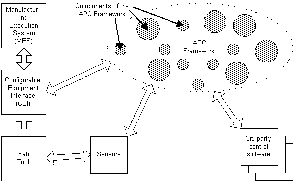 The APC Framework has been designed to work along with a fab’s MES (Manufacturing Execution System – in AMD’s case, this it WorkStream by Concilium) and CEIs (Configurable Equipment Interface) to provide APC functionality. It is composed of not one large program, but a number of smaller, specialized pieces that work together. The "interchangeable parts" of the APC Framework are called components. These components are analogous to stereo components, where each component is