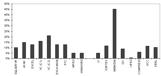 Spike: An Optimizer for Alpha/NT Executables Robert Cohn, David Goodwin, P. Geoffrey Lowney, and Norman Rubin spike@vssad.hlo.dec.com Digital Equipment Corporation Abstract Spike is a profile-directed optimizer for Alpha/NT executables that is actively being used to optimize shipping products. Spike consists of the Spike Optimization Environment (SOE) and the Spike Optimizer. Through both a graphical interface and a command-line interface, the Spike Optimization Environment provides a simple means to instrument and optimize large applications consisting of many images. SOE manages the instrumented and optimized images as well as any profile information collected for those images, freeing the user from many tedious and error-prone tasks typically associated with profile-directed optimization. SOE also simplifies the collection of profile information with Transparent Application Substitution (TAS). With TAS, the user invokes the original version of the application and the instrumented or optimized version of the application is transparently executed in its. SOE uses the Spike Optimizer to optimize images. The Spike Optimizer performs code layout to improve instruction cache behavior [Pettis90], hot cold optimization [Cohn96] and register allocation. The optimizations are targeted at large call-intensive applications, where loops span multiple routines, and each routine contains complex control-flow. For this class of applications, Spike provides significant performance improvement, reducing execution time by as much as 20%. 1. Introduction Profile-directed optimization is rarely used in practice because of the difficulty of collecting, managing, and applying profile information. Spike solves most of these problems, allowing the user to easily optimize large applications composed of many images. In this section we describe the general procedure for using profile-directed optimization, its difficulties, and how Spike overcomes these difficulties. The first step in profile-directed optimization is to instrument each image in an application so that when the application is run, profile information is collected. Instrumentation is most commonly done by using a compiler to insert counters into a program during compilation [Multiflow], or by using a post-link tool to insert counters into an image [Atom, Pixie]. Statistical or sampling-based profiling is an alternative to counter based techniques [DCPI, MORPH]. Some compiler-based and post-link systems require that the program be compiled specially, so that the resulting images are only useful for generating profiles. Many large applications have lengthy and complex build procedures. For these applications, requiring a special rebuild of the application to collect profiles is an obstacle to the use of profile-directed optimization. Spike directly instruments the final production images so that a special compilation is not required. Spike does require that the images be linked to include relocation information. However, including this extra information does not increase the number of instructions in the image and does not prevent the compiler from performing full optimizations when generating the image. Most large applications consist of multiple images, a single executable and many dynamically linked libraries (DLL). Instrumenting all the images can be difficult, especially since the user doing the profile-directed optimization may not know all of the images in the application. Spike relieves the user of this task by finding all the DLLs that are used by the application, even if they are loaded dynamically (i.e. with a call to LoadLibrary). After instrumentation, the next step in profile-directed optimization is to execute the instrumented application and collect profile information. Most profile-directed optimization systems require that the user first explicitly create instrumented copies of each image in an application. Then the user must assemble the instrumented images into a new version of the application, and execute it to collect profile information. As the profile information is generated, the user is responsible for locating all the profile information generated for each image, and merging that information into a single set of profiles. Our experience with users has shown that requiring the user to manage the instrumented copies of the images and the profile information is a frequent source of problems. For example, the user may fail to instrument each image, or may attempt to instrument an image that has already been instrumented. The user may be unable to locate all the generated profile information, or may incorrectly combine the profile information. As described in Section 2, Spike frees the user from these tedious and error-prone tasks by managing the instrumented copy of each image as well as the profile information generated for each image. After profile information is collected, the final step is to use the profile information to optimize each image. As with instrumentation, the typical profile-directed optimization system requires the user to explicitly optimize each image, and to assemble the optimized application. Spike uses the profile information collected for each image to optimize all the images in an application and assembles the optimized application for the user. 2. Spike Optimization Environment The Spike Optimization Environment (SOE) provides a simple means to instrument and optimize large applications consisting of many images. SOE can be accessed through a graphical interface or a command-line interface that provides identical functionality. The graphical interface, called the Spike Manager, is described in Section 2.1. The command-line interface allows SOE to be used as part of a batch build system such as make.In addition to providing a simple-to-use interface, SOE keeps the instrumented and optimized versions of each image and the profile information associated with each image in a database. When an application i