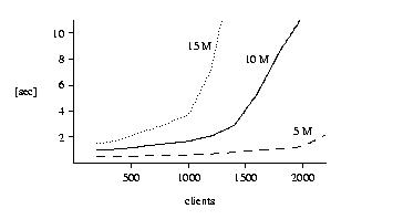 In two throughput experiments, get requests for objects of 10K and 1K size are generated at the highest possible rate. A single physical client sends requests for randomly chosen virtual clients. (The Ethernet driver and the hit-server software are constructed such that, provided the utilized bandwidth does not exceed that of one card, there is no measurable difference between the packets coming through a single or through multiple cards.) To ensure an infinite burst, the request generator does not wait for a request to be completed. Avoiding the request-generation problems mentioned in [1], this method is good for generating up to 161,000 requests per second. To be sure to saturate the hit-server in a realistic way, we send requests with random gaps such that the hit-server gets slightly more requests on average than it completes. For the experiments, all objects were resident in the hit-server so that no miss-server communication was required.