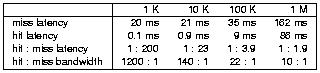 Table 2: Hit/miss costs. The miss