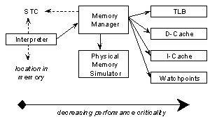 Briefly, SimICS collapses a range of operations into a common (optimistic) path using a Simulator Translation Cache (STC). Figure 3 illustrates the principle. The service routine for the memory operation will perform an inlined lookup in the STC. If it "hits" in this data structure, it can proceed directly. The inlined lookup is carefully designed and consists of nine host (SPARC) instructions. This implicitly or explicitly includes a physical to logical translation, a TLB lookup, a protection check, a watchpoint check, an alignment check, a data cache lookup, location of the physical storage in the simulator, and a profile count of the target address.