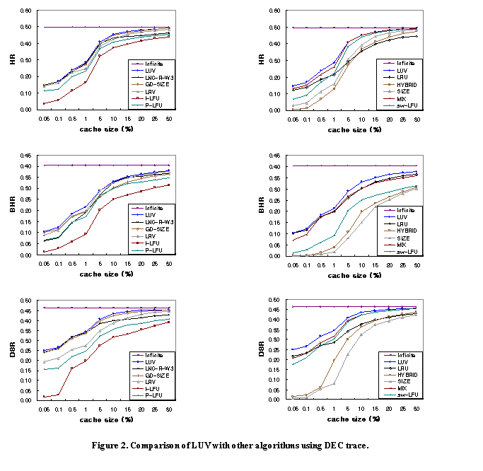 algorithm, namely, the hit rate, the byte hit rate, and the delay-savings ratio.