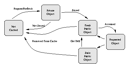 The amount of space available in the cache also affects the state of web objects. When the cached bytes exceed capacity, the cache uses a removal policy to determine the best objects to be removed. These objects leave the Fresh or Stale Public Object states and return to the Not Cached State.