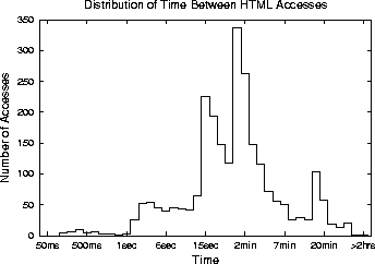 As the snooper recorded the content of each page, it also parsed the pages and logged each embedded URL and its reference type (HREF, IMG SRC, etc.). The log analyzer determined which of these URLs were later accessed from that page. It also determined the size of each embedded HREF URL and its embedded images by calling a utility similar to the popular webget. Therefore, the sizes were determined, in some cases, weeks or months after the fact. It is assumed that size changes occurring the interim are negligible, or at least not substantially skewed in one direction or another.